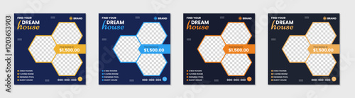 Real estate home sale social media post banner design template For digital marketing. Real estate house property sale social media post template.