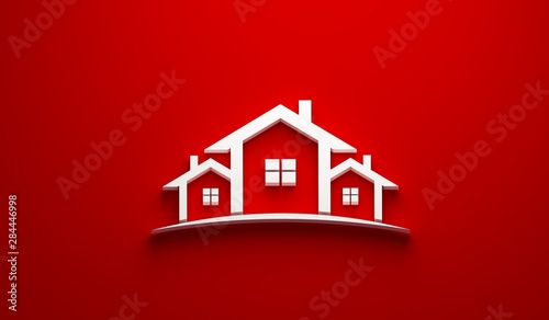 Real Estate Houses Logo Design. 3D Rendering Illustration