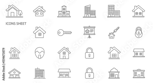 Real Estate Icons House, Building, Key, Lock, Property Vector Graphics