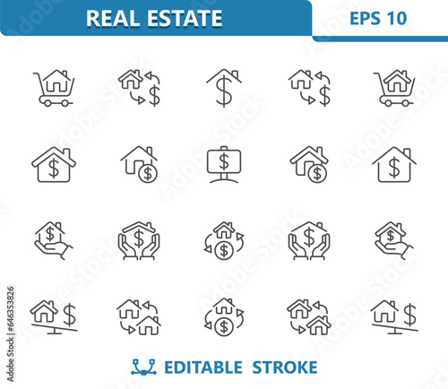 Real Estate Icons. House, Home, Dollar, Price, Housing Market Vector Icon Set