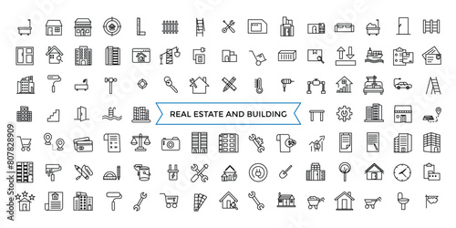 Real Estate line web icon set. Included the icons as realty, property, mortgage, home loan and more. Outline icons pack. Icon collection. Editable vector icon and illustration.