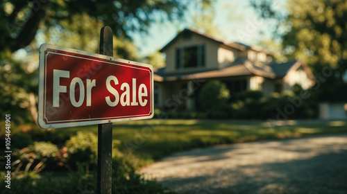 Real Estate Listing - Elegant Suburban House for Sale with Yard Sign, Big home for sale, Red Color Sign