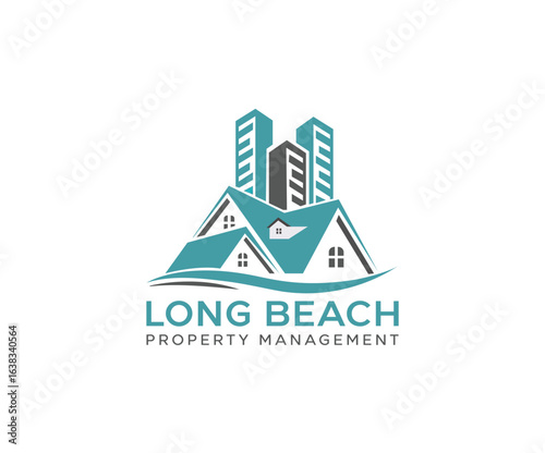 Real estate logo design featuring a beach house icon with a roof and building symbol