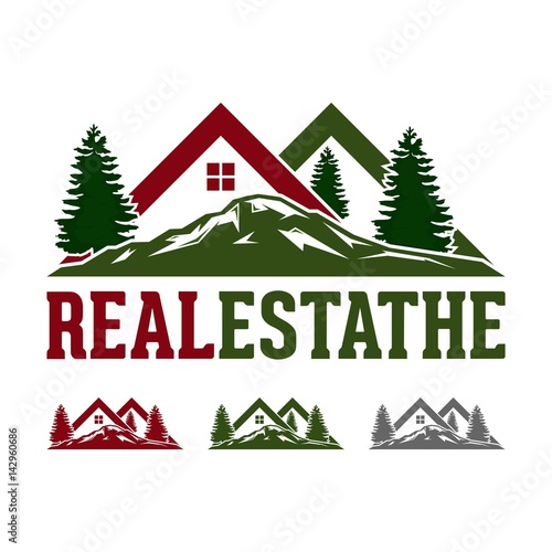 Real Estate Logo, Mountain and Roof Design Logo Vector
