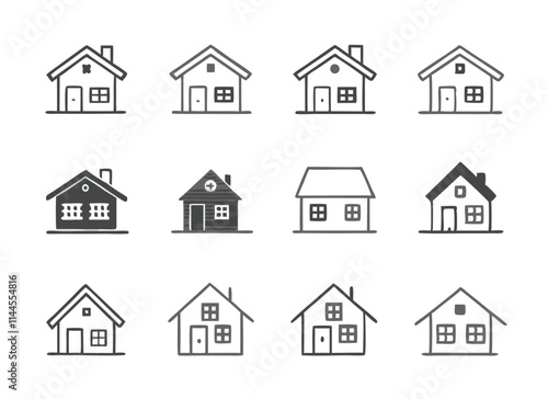 Real Estate Property Thin Line Icons - House, Garage, and Cottage Set. Editable stroke Vector illustration. Black Outline Icons of Houses and Apartments