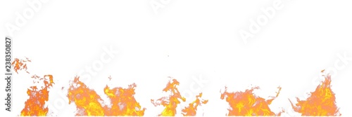 Real fire flames isolated on white background. Mockup on white of 5 flames.
