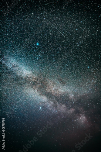 Real Night Sky Stars With Milky Way Galaxy. Natural Starry Sky Colorful Background