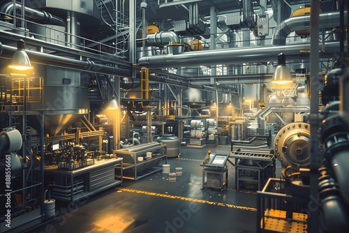 Realism of Convey the scale and efficiency of modern manufacturing with a factory background. very detailed