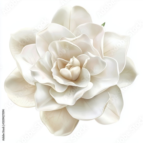 Realistic 3D Icon Cartoon of a Macro Close-Up of a Blooming Gardenia with Creamy White Petals isolated on clear white background