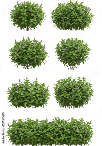 Realistic 3D Illustration of Green Bushes on Transparent Background