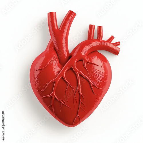 Realistic 3D Render of a Human Heart with Detailed Vessels and Anatomy