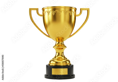 Realistic 3D Render of Golden Trophy Cup Isolated on Transparent Background