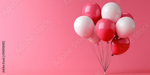 Realistic 3D Rendering of Vibrant Pink, Red, and White Balloons on a Soft Pink Background for Party Decorations and Celebrations