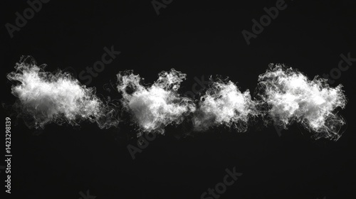Realistic 3D Smoke Clouds Ethereal Steam, Misty Fog and White Vapor Isolated on Black Background