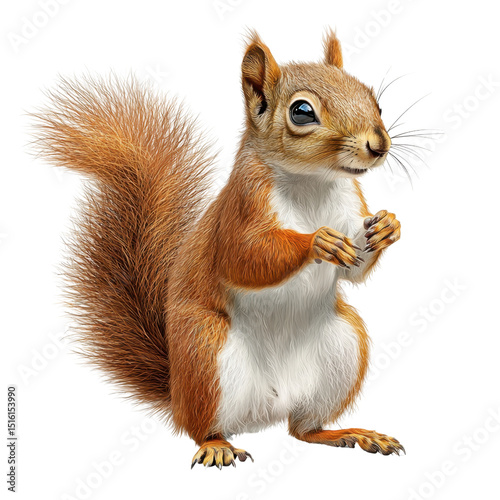 Realistic and Adorable Squirrel with Fluffy Tail Posing for a Cute Animal Portrait in Bright Natural Colors transparent background, png