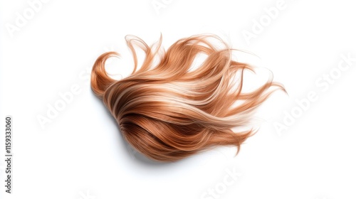 Realistic auburn hair strands with highlights on a clean white background, showcasing the texture and flow of beautiful, natural-looking hair for beauty and fashion concepts.