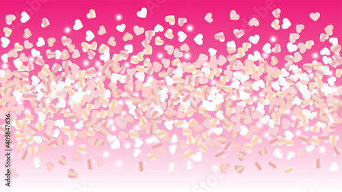 Realistic Background with Confetti of Hearts Glitter Particles. St. Valentine Day. Celebration pattern. Light Spots. Explosion of Confetti. Glitter Vector Illustration. Design for Banner.