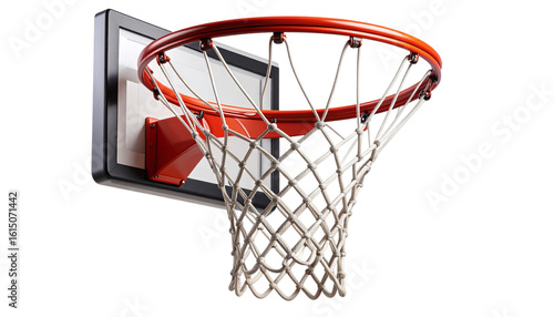 Realistic basketball hoop with metal rim, net, and backboard, fully isolated on a transparent PNG background — perfect for sports designs, game illustrations, or athletic promotional content.