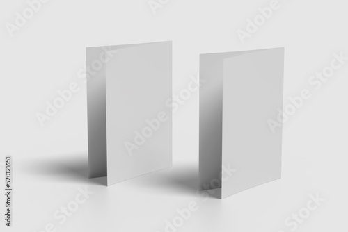 Realistic blank bifold brochure illustration for mockup. 3D Render.