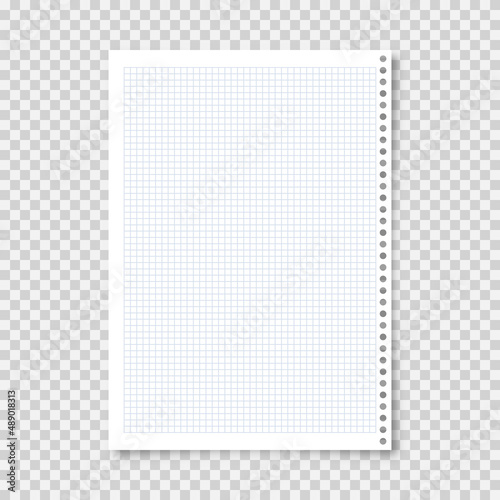Realistic blank lined paper sheet in A4 format on transparent background. Notebook page, document. Design template or mockup. Vector illustration.