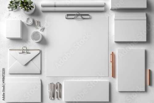 Realistic blank stationery set mockup isolated created with generative ai