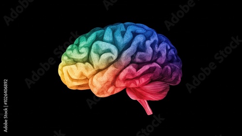 Realistic brain in rainbow colors representing creativity diversity mental health