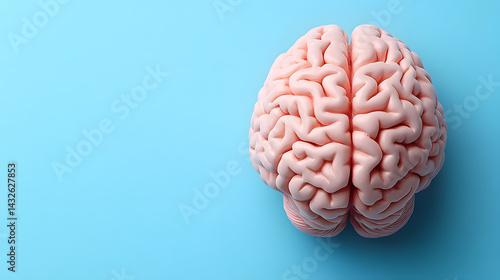 Realistic Brain Model on Blue Background Highlighting Cognitive Concepts and Neuroscience