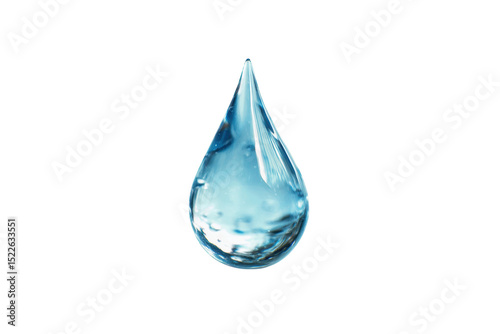 Realistic clear blue water droplet on black background capturing fluid dynamics, cut out