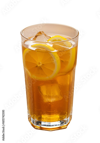 Realistic Cocktail Illustration With Lemon Ice And Transparent Glass Isolated
