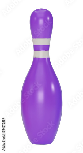 Realistic colorful 3D bowling pins set isolated on white background. Purple Bowling pin. Bowling icon. 3D png illustration.