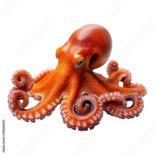 [Realistic colorful octopus model closeup] Realistic Orange Octopus Model with Detailed Anatomy and Vibrant Colors on Black Background.