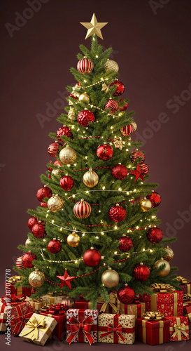 Realistic Decorated Christmas Tree Vertical with Gifts