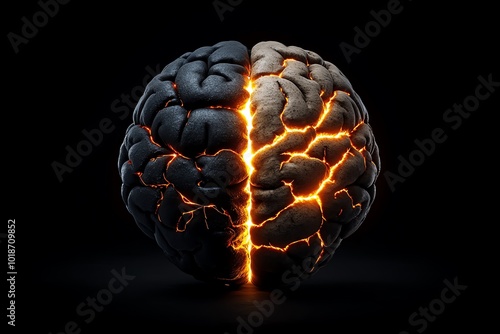 Realistic depiction of a brain split into two hemispheres, one side glowing brightly and the other in darkness, symbolizing the dualism of reason and emotion