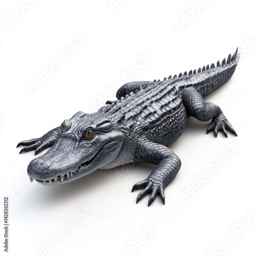 Realistic depiction of a crocodile model showcasing intricate details on skin texture and lifelike features in a pristine environment