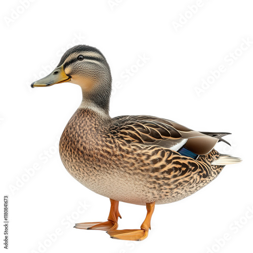 realistic depiction of a duck. showcasing its detailed plumage and natural posture against a clean white background this representation emphasizes the beauty of wildlife and can be used for educationa
