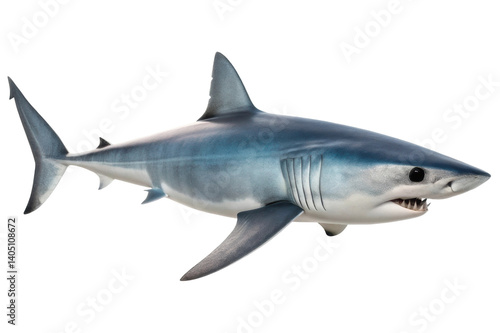 Realistic depiction of a shark swimming in the ocean with intricate details showcasing its fins and body structure