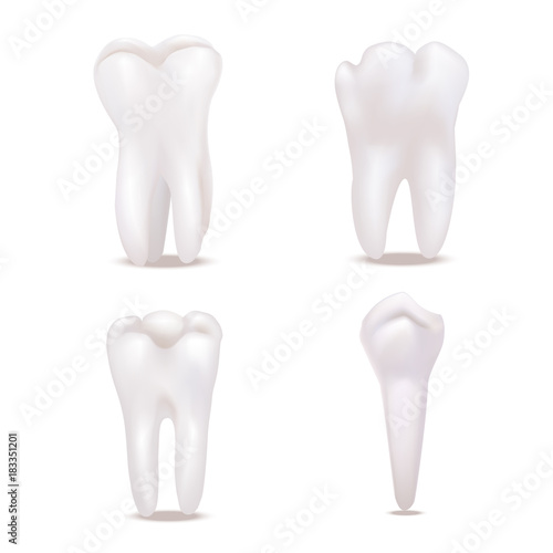 Realistic Detailed 3d White Healthy Teeth Icons Set. Vector