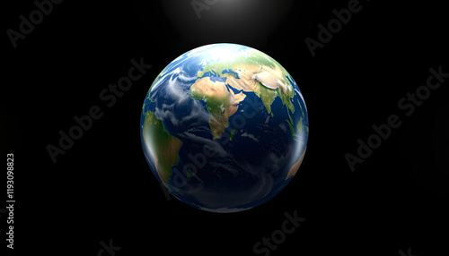 Realistic Earth Rotating on black background Loop . Globe is centered in frame, with correct rotation in seamless loop, smooth light, with white tones