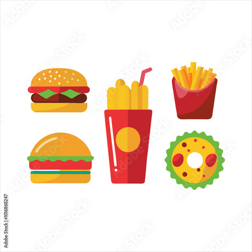 "Realistic Fast Food Vector Stickers Set | High-Quality Isolated Design on White Background"