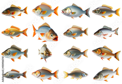 Realistic Fish Illustrations Set with Transparent Background for Design and Overlay Use
