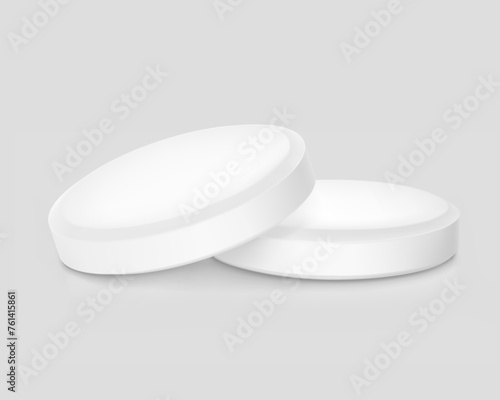 Realistic flat faced plain tablet mockup. Vector illustration isolated on grey background. Can be used for medical and cosmetic. Ready for your design. EPS10.