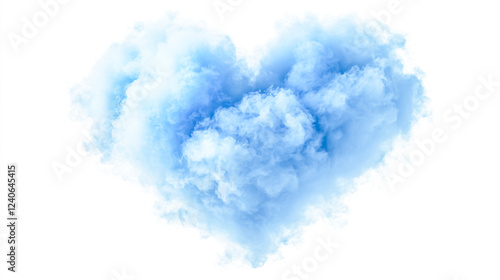Realistic Fluffy Heart-Shaped Blue Cloud Isolated on a White Background with Soft, Airy Texture and Vivid Color Details