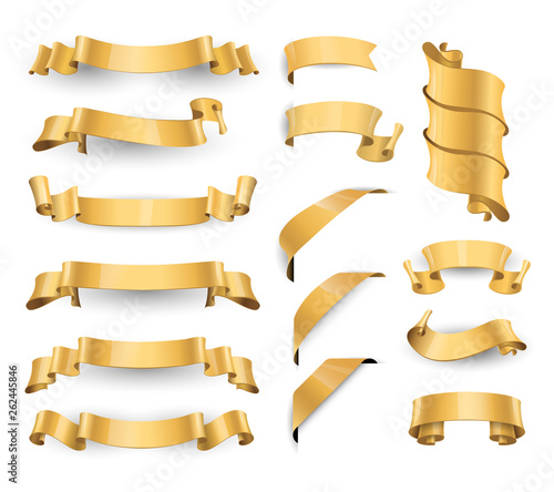 Realistic Gold Glossy vector ribbons. Large set. vector