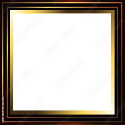 realistic golden square frame. Gold or copper corners, golden photo frame template on transparent, png.