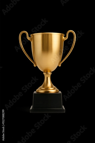 Realistic Golden Trophy Isolated on Black Background with Clean Shadows