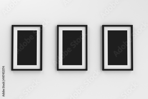 Realistic group of blank white picture frame templates set on white background, 3D render