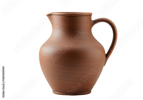 Realistic handmade clay water jug with terracotta color and smooth matte texture, isolated on transparent background.