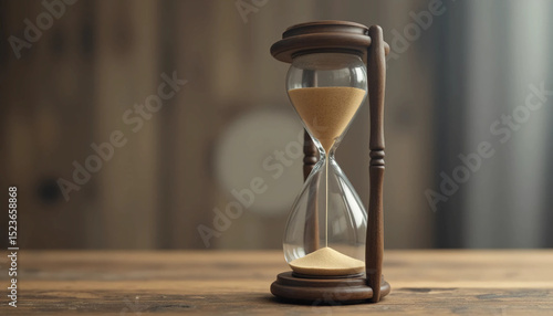 Realistic hourglass with falling sand symbolizing time management and countdown urgency.