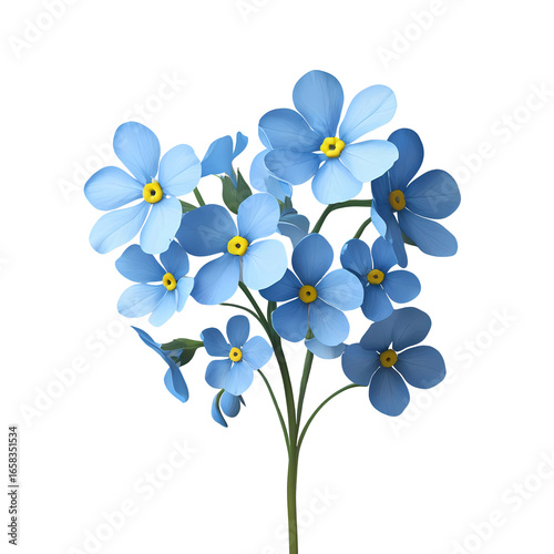 Realistic illustration of delicate forget-me-not flowers on a white background. Generative AI