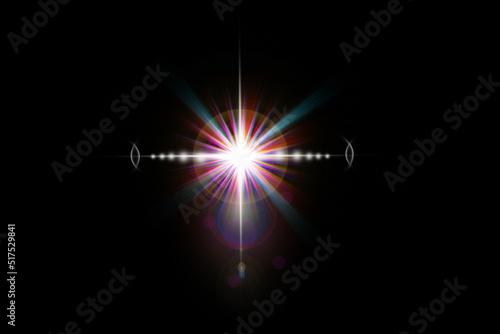 Realistic lens flare lights effect on black background